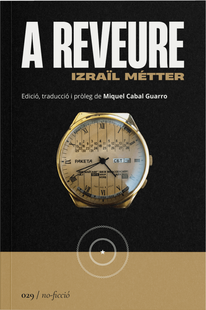 Izraïl Métter (1909 – 1996) va ser un escriptor jueu ucraïnès de llengua russa. Autor de carrera literària ambivalent, d’una banda va publicar nombrosos relats i novel·les de caràcter anodí que li van permetre sobreviure en l’ambient opressiu del règim soviètic. De l’altra, va escriure una novel·la i diversos relats i textos autobiogràfics d’altíssim valor literari que només van poder veure la llum amb la caiguda de l’URSS. Alguns d’aquests textos i relats són els que configuren A reveure, traduït i prologat per Miquel Cabal Guarro, del qual us n’avancem un, «La por».